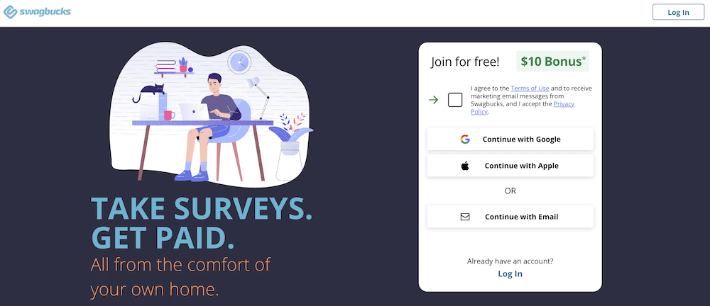 Swagbucks is another great survey site to make some extra money in your free time. As a new member, you can earn up to $10 per survey!